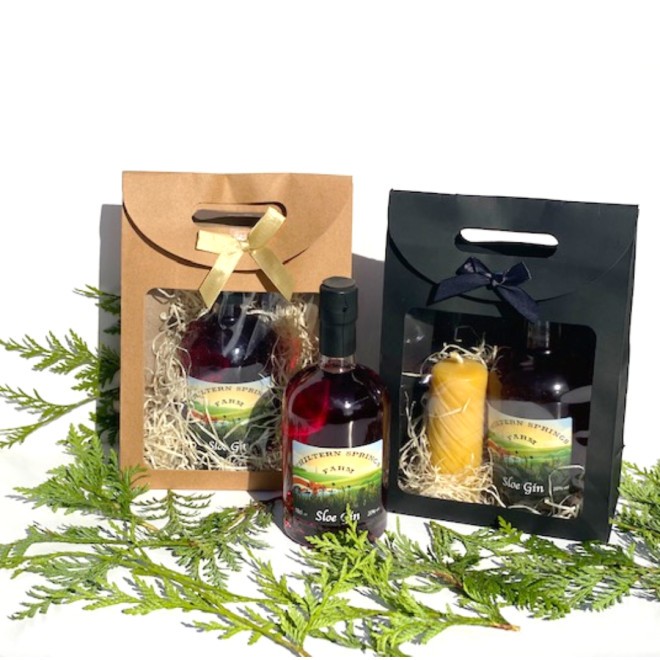 Sloe Gin & Candle Deep in flavour and rich in colour! A bottle of our finest Sloe gin and a natural bees wax candle, presented in a beautiful gift bag with natural Pine shavings, makes a perfect gift. The candles will vary, but will be a mixture of one of the four in our range. Please let us know if you have a preference, and we will try to accommodate Set Honey or Runny Honey Products from the hive! Runny or set pure, raw honey with a natural beeswax candle. All presented in a gift bag (either black or gold) and dressed with natural pine shavings.